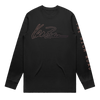 The High Road Script Long Sleeve Tee in black with front and sleeve print.